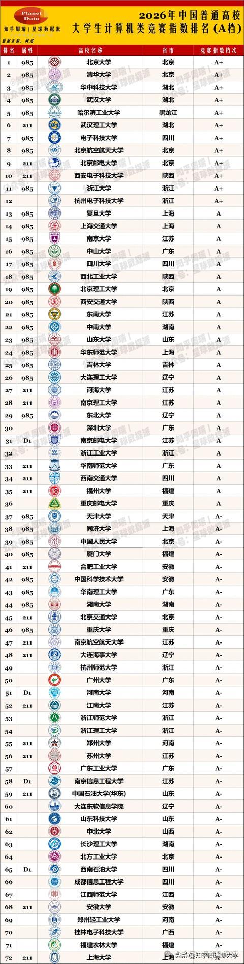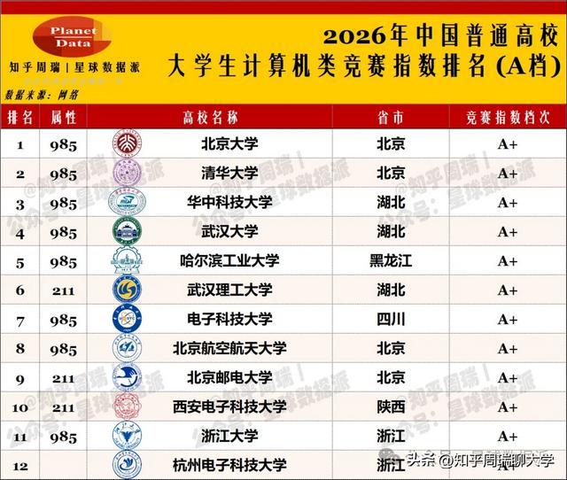 斗鱼app登录 2026大学筹备机竞赛指数排行:北邮清北等12校获A+
