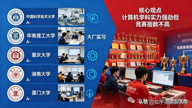 A-名单中,有一些名字的出现一样令东谈主玩味。中国科学时代大学,A-。华南理工大学,A-。重庆大学,A-。湖南大学,A-。厦门大学,A-。这些学校的筹备机学科,在各样排行中时时位居世界前哨,但在竞赛指数中却未能进入A档。