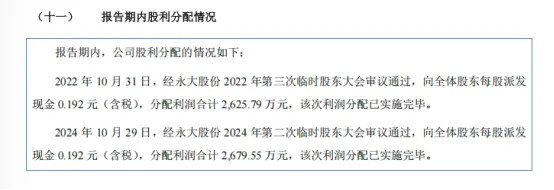 另外,在讲述IPO的关键时期,永大股份还曾两次现款分成,2022年、2024年分别向举座鼓动分拨利润2625.79万元、2679.55万元,有计划分成5305.34万元。