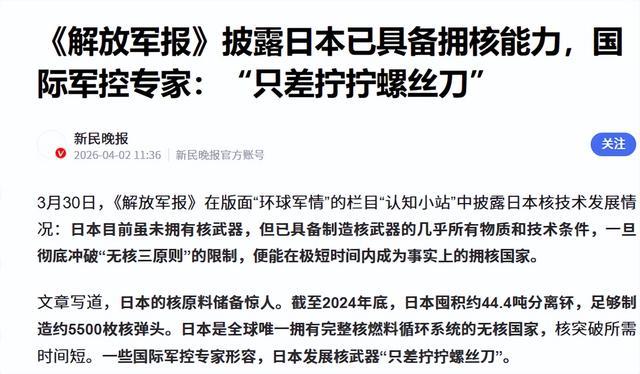 斗鱼app下载 5500枚核弹原料已到位,摆脱军报通报全球:日本拥核只差临门一脚