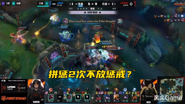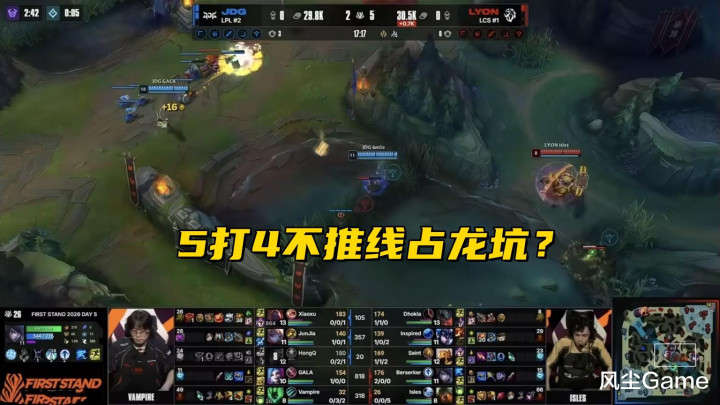 第四条小龙也很空洞,视线被京东占了之后,LYON自我拉扯,碰了一下大龙,又念念纪念打小龙团,恶果龙依然被嘎子单吃掉了,第五条龙,又是放小龙打大龙,打到7000多血的本事,LYON瞬息停手了,连放三条小龙,反而让京东先拿到了停牌龙,LYON的这几波方案,是的确很空洞。